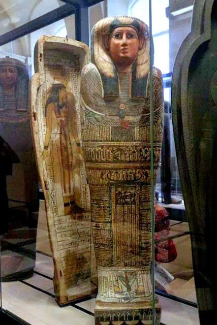Then comes the date. the serapeum is said to date from the 18th dynasty with amenhotep lll the new kingdom circa 1388-1350 BCE. Now how did they reach this date? from a papyrus from the king ordering the construction additional rooms to the catacombs. to bury an apis bull. Which is what the accepted belief is for when it comes to what are the boxes for? that being sarcophagi for the sacred animal. but when we look at the design and materials used in sarcophagi you find the designs of the 18th dynasty do not match.